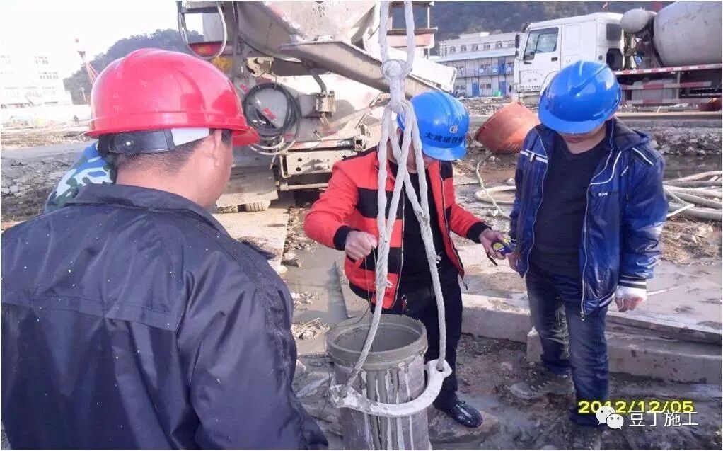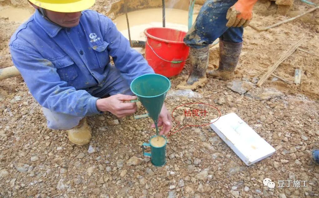 ![]() 施工工艺流程图 ![]() ![]() 第一节 施工准备 National Day ![]() 场地平整 National Day ![]() (1)开挖前场地完成三通一平。地上、地下的电缆管线、设备基础等障碍物均已排除处理完毕。各项临时设施如临时电、临时水、安全设施准备就绪。(2)熟悉施工图纸及场地的地下土质、水文地质资料。(3)操作前应对吊车等进行安全可靠的检查和试验,确保施工安全。(4)场地应先按设计图纸要求的标高进行平整,清除桩位处地上、地下一切障碍物(包括大块石、树根和垃圾等),场地低洼处须回填夯实。 泥浆池 ![]() ![]() 第二节 测量定位 National Day ![]() 先根据规划部门测设的建筑物定位坐标点和高程点,在场区内用全站仪引测现场控制网点,经甲方代表及监理核验后,作为现场施工放样的依据。然后根据该点进行轴线、桩位放样和标高控制。现场控制点用混凝土浇筑,并安设防护标志,防止施工中碰撞而发生位移。桩位测定分初测、复测,分别为挖埋护筒前和埋设护筒后,复测合格后,打入Ф12定位钢筋一根,作为钻孔机定位标点,然后用水准仪测定其护筒和地坪标高,经甲方、监理工程师验收合格后方可就位施工。 ![]() 第三节 埋设护筒 National Day ![]() ![]() 01 埋设护筒 1 、护筒埋设应准确、稳定,护筒中心与桩位中心的偏差不得大于20mm,护筒的倾斜度不大于1% ;2、 护筒一般用4~8mm钢板制作,其内径应大于设计桩径200mm,其上部开设1~2个溢浆孔;3 、护筒的埋设深度:在粘性土中不宜小于1.5m;砂土中不宜小于2.0m;护筒顶端高出地面30cm。 护筒作用:保护孔口、定位导向,隔离地表水、保持孔内水头高度,防止塌方,固定钢筋笼等。 ![]() 埋设十字护桩 National Day ![]() 为了校正护筒及桩孔中心,在挖护筒之前采用“+”字交叉法在护筒以外较稳定的部位设4个定位桩,定位桩采用φ20钢筋,在位于护筒 边1~2m位置进行埋设,定位桩顶高于护筒顶20cm,且埋入地面不小于30cm,并浇筑20cm厚半径20cm圆型混凝土进行固定,并用红油漆标识,施工中做好定位桩的保护工作。 ![]() ![]() ![]() 第四节 钻机就位 National Day ![]() ![]() 01 钻机就位 钻机安放在枕木上,必须平整、稳固,确保施工中不移位、不倾斜;钻头中心与护筒中心误差不得大于20mm,钻孔时,孔内泥浆面高出地下水位1m以上,当受地下水位涨落影响时应高出地下水位1.5m以上,或不低于自然地面。 ![]() ![]() 冲击钻机 National Day ![]() 冲击式钻机能适应各种不同地质情况,特别是卵石层中钻孔,冲击式钻机较之其它型式钻机适应性强。同时,用冲击式钻机成孔,孔壁四周形成一层密实的土层,对稳定孔壁,提高桩基承载能力,均有一定作用。冲锤(如图所示)有各种形状,但它们的冲刃大多是十字形的。 ![]() ![]() 3PNL-12型泵结构图 National Day ![]() 1.防护罩 2.泵体 3.叶轮 4.泵盖 5.密封体 6.导管 7.泵轴 8.托架 9.联轴器 10.电动机 泥浆泵是钻机的重要配套产品,用于钻孔作业中循环泥浆。泥浆泵是在钻孔过程中,将泥浆加压后携带出井底的岩屑和供给孔底动力钻具的动力,向孔底输送和循环钻孔液的往复泵。 ![]() ![]() 泥浆泵 ![]() 第五节 冲击成孔 National Day ![]() ![]() 01 冲击成孔 1、开锤前,护筒内必须加入足够的粘土和水,然后边冲击边加粘土造浆,以保证粘土造浆护壁的可行性。2、采用钻孔的粘土造浆,成孔过程中要及时加水调整好泥浆比重:≤1.25;粘度:18-20S;含砂率:≤6%。3、定界面、终孔验收。在钻进过程中对照岩土工程勘察报告,进入中风化凝灰岩时施工单位技术员要查看岩样,自查符合要求后再上报监理、甲方定界面,验终孔。验收时从捞取的钻渣中取出样品,查明岩样并填写岩层深度、取样时间等标签,标签填写好后装袋保留。4、冲击钻对准护筒中心,要求偏差≤±20mm,开始低锤密击,锤高0.4~0.6m,并及时加粘土泥浆护壁,使孔壁挤压密实,直至孔深达护筒下3~4m后,才加快速度,加大冲程,将锤提高至1.5~2.0m以上,转入正常连续冲击。5、在钻进过程中每1~2m要检查一次成孔的垂直度。如发现偏斜应立即停止钻进,采取措施进行纠正。对于变层处和易于发生偏斜的部位,应采用低锤轻击、间断冲击的办法穿过,以保持孔形良好。 ![]() 界面岩样 ![]() 终孔岩样 ![]() 第六节 第一次清孔 National Day ![]() ![]() 01 第一次清孔 第一次清孔也是至关重要的,其操作方法是:正循环冲进终孔后,将泥浆管捆在锤头的钢丝绳上,并缓慢放入孔底,进行泥浆正常循环清孔,采用大泵量泵入性能指标符合要求的新泥浆;返出泥浆的含砂量≤6%;泥浆比重≤1.25;孔底沉渣厚度≤50㎜。经第一次测量孔深,达到相应钻孔深度后,第一次清孔完毕。 ![]() ![]() 泥浆粘度计 ![]() 泥浆比重计 ![]() 沉渣仪 ![]() 泥浆指标检测 ![]() ![]() 终孔验收 桩孔终孔,由施工单位自检合格后,会同甲方及现场监理共同对孔径、孔深、桩孔垂直度及孔底沉渣等各项指标,依据技术规范及设计要求进行检查、验收,达到要求即可转入下一道工序。 根据《建筑桩基技术规范》(JGJ94-94)及设计要求,执行如下质量标准:1、桩位中心允许偏差不大于50mm;2、孔径不小于设计桩径;3、孔深不小于设计孔深;4、桩孔垂直度偏差应小于1%; ![]() 测量孔径 ![]() 测量孔深 ![]() 第七节 钢筋工程 National Day ![]() 7.1钢筋原材 National Day ![]() 1、检查钢筋生产厂家营业执照、生产许可证、出厂合格证、厂家检测报告。 2、钢筋进场时应检查钢筋的品种、规格、型号、批量、炉号、