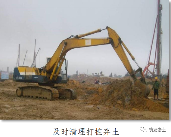 ![]() 一、 地基处理工作管理流程 1、地基处理试验检测合格后,方可开始进行地基处理。 2、地基处理工程开工前工程部须组织基础图纸会审。 3、地基处理工程开工前,由工程部组织对基础施工监理人员进行交底,并检查施工单位技术交底, 交底应有书面资料, 并形成会 议纪要。 4、(除地基处理中的增强体单桩施工外)地基处理施工前,要组织外委设计院、工程部、工程技术部、施工单位进行地基验槽。 5、地基处理施工开始后,工程部负责人(或技术经理)须到现场检查第一个检验批施工情况,确保工程师对交底理解无误。 6、施工中,工程部应按照集团有关规定进行旁站、验收、检查,当现场施工和原设计要求有较大偏差或有其他异常情况时,应 立即暂停施工,并通知总工室、工程技术部。 7、施工完成后,应及时按规范要求进行检测、验收,并将检测、验收结果报备工程技术部 ![]() 二、天然地基 1、定义:自然状态下即可满 足承担基础全部荷载要求,不需要人工处理的地基。 2、天然地基施工控制要点 ◆开挖标高符合设计标高要求 ◆持力层符合图纸要求,严禁扰动持力层; ◆基坑平面尺寸符合图纸要求; ◆严禁超挖和随意回填; ◆根据勘察、设计要求,进行槽底钎探。 ![]() ![]() ![]() ![]() 三、换填地基 1、定义:挖去浅层软弱或不均匀土层,回填满足设计要求的材料,并分层碾压夯实,形成满足设计要求的换填垫层地基。 2、换填地基施工控制要点 ◆开挖标高符合设计要求; ◆持力层符合图纸要求,严禁扰动持力层; ◆基坑平面尺寸(包括压力扩散尺寸)符合图纸要求; ◆严禁超挖和随意回填; ◆根据勘察、设计要求,进行槽底钎探; ◆地基验槽; ◆按方案分层回填碾压; ◆根据换填材料,进行环刀、灌水、灌砂,等施工过程检验; ![]() ![]() ![]() 四、夯实地基(强夯法) 1、定义:反复将夯锤提到高处使其自由落下,给地基以冲击和振动能量,将地基土密实处理或置换形成密实墩体的地基。 2、夯实地基(强夯法)施工控制要点 ◆强夯施工前应在施工现场有代表性的场地进行试验,试验区面积不小于20m×20m; ◆强夯夯锤质量宜为10t-60t,宜选用圆形; ![]() ![]() ![]() 五、复合地基 复合地基是部分土体被增强或被置换,形成由地基土和竖向增强体共同承担荷载的人工地基。 根据增强体强度,分成散体材料复合地基、粘结强度增强体复合地基。 根据施工工艺,复合地基一般又分为水泥土搅拌桩复合地基、高压喷射注浆桩复合地基、砂桩地基、振冲桩复合地基、土和灰土挤密桩复合地基、水泥粉煤灰碎石桩复合地基及夯实水泥土桩复合地基。我们最常用的CFG复合地基,属于有粘结强度增强体复合地基。 ![]() ![]() ![]() 1、土、灰土挤密桩(DDC)、夯实水泥土桩复合地基 ◆适用范围:适用于处理地下水位以上的粉土、黏性土、素填土、杂填土和湿陷性黄土等地基,可处理地基的厚度宜为3m~15m; ◆常用成孔方式:冲击、静压成孔或钻孔等方法; ◆常用夯填设备:重夯(鱼雷锤)、自动化夯填机; ![]() ![]() ![]() ![]() ◆填料要求:土料有机质含量不应大于5%,且不得含有冻土和膨胀土,混合料含水量应满足最优含水率要求,允许偏差应为±2%;石灰可选用新鲜的消石灰或生石灰粉,粒径不应大于5mm。消石灰的质量应合格,有效CaO+MgO含量不得低于60%;水泥生产日期在3个月以内;土料和白灰(水泥)应拌合均匀; ![]() ![]() 具体控制要点: ▲成孔设备的配重(静压机)、动力(长螺旋钻机)需满足成孔要求,现场复核钻杆直径、长度,确保成孔直径与深度达到设计要求; ▲现场取土样,由试验室确定土的最优含水率,现场应有相关控制措施,必要时应进行增湿或晾晒(现场判断最优含水率方法:手握成团,落地开花); ▲已拌灰土(水泥土)不得超过24小时或隔夜使用,被雨水淋湿、浸泡灰土严禁使用,按作废处理;雨期或冬期施工,应采取防雨或防冻措施,防止填料受雨水淋湿或冻结; ▲夯锤直径与设计桩径比例应控制在0.7-0.8,夯锤形状下端应为抛物线锥体,重量不应小于1.5t;夯填前必须保证空夯次数,一般不少于3击,若桩长未能有效穿透湿陷性黄土层,应不少于8击;填土机械必须设有挡土板,确保每次填料量不大于0.15m3(成孔直径400mm),夯击次数不少于8击,距孔口3m以内不少于10击。 2、CFG桩复合地基 ◆适用范围:适用于处理黏性土、粉土、砂土等地基; ◆常用成孔方式:冲击、振动沉管或长螺旋钻孔(分为履带式和步履式)等方法; ◆工程部工程师必须对CFG桩施工进行全程旁站,并现场做好旁站记录。重点验收内容为(1)混土标号;(2)桩机型号;(3)桩位(轴线)及标高;(4)桩径、桩长等,每根桩都必须检查到位,确保桩基施工质量。 ![]() ![]() ◆施工流程及控制要点 (1)桩定位测放; 施工前工程部必须对每一栋建筑物的施工轴线控制网和外廓线的测量结果进行核验,并及时办理验收手续; ![]() ![]() 具体控制要点: ▲桩定位放线时用钢钎砸孔,用白灰灌实后插一次性筷子或焊条; ▲每栋楼须做控制桩位,以便施工过程中复核桩位; ▲施工过程中及时按照图纸检查桩位的准确性; ▲桩位偏差规范要求:满堂布桩时≤0.4D(D为桩径)。 (2)钻机就位、对中、垂直度调整; (3)成孔; 第一根桩(试桩)终孔时工程部须提前通知设计、勘察、施工单位、总工室、工程技术部共同确认终孔标准。 ![]() ![]() 具体控制要点: ▲钻机成孔前应对钻头直径进行复核(桩径允许偏差为-20mm); 