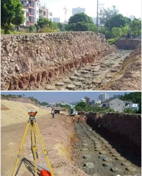 ![]() ![]() 各种基坑支护结构施工工艺流程解析 ![]() 房屋建筑深基坑工程前期管理流程图 ![]() ![]() 一、水泥搅拌桩施工工艺流程 ![]() 水泥搅拌桩施工流程图 ![]() 1.1 施工准备 1、施工图准备:熟悉并掌握设计施工图纸,充分了解设计意图,如有疑问,及时与设计单位沟通解决。 2、方案准备:编制相关施工方案,并报业主、监理单位审批同意后执行。 ![]() 3、试验准备:按要求对原材料进行抽样送检,复试合格后投入使用。 4、交底准备:召开项目部全体人员会议,向施工人员及操作人员做好施工技术和安全技术交底,使职工了解设计意图,掌握施工要领和关键工序及安全操作规程,做到分工明确,职责分明。 5、现场准备、测量准备、试桩等。 1.2 桩位放样 桩位放样前,对规划测量单位移交的导线点,水准点进行复核,确认无误后使用。测量人员应按设计施工图,进行搅拌桩桩位、原地面标高、孔口标高等有关测量放样工作,并做好测量放样记录及布桩图等,施工前应报请甲方和监理工程师复核,并填写测量放样报验单,经甲方和监理工程师审查签认。 ![]() 1.3 开挖沟槽 1、根据施工图,在现场测设出水泥搅拌桩的施工轮廓线,作为开挖沟槽的界线。2、为了防止水泥搅拌桩施工时水泥土隆起影响施工,应根据现场的水泥土搅拌桩轮廓线开挖施工沟槽,沟槽的深度按桩的幅度数及桩长确定。开挖沟槽的过程中,要求施工单位有专人负责进行现场指导。 3、根据水泥土搅拌桩施工平面图,在沟槽边设桩的定位控制线。 4、在桩的定位控制线上,每隔5米设定桩位标志,确保桩间搭接符合规范、设计规定。 5、施工前必须排除沟槽内的积水,以免积水渗入影响水泥土搅拌桩的桩身强度。 ![]() 1.4 桩机就位 由施工员、桩机班长统一指挥桩机就位,桩机下铺设钢板及路基板,移动前看清前后、左右各位置的情况,发现有障碍物应及时清除,移动结束后检查定位情况,如有偏差及时纠正,桩位偏差不大于50mm。桩机就位应平稳、平正,用经纬仪或线锤进行观测,确保钻机的垂直度,搅拌桩垂直度精度不低于1/200。桩机作业前现场监理、甲方检查搅拌桩机是否到达作业位置。 ![]() 1.5 水泥搅拌的设计参数要求 1、水泥搅拌桩采用的水泥、主动区水泥掺量、被动区水泥掺量、水泥浆的水灰比、外加剂等要符合设计及规范要求。 案例:温州郭溪项目水泥搅拌桩的设计要求 1、水泥搅拌桩采用42.5的普通硅酸盐水泥,主动区水泥掺量为15%,被动区水泥掺量为15%,水泥浆水灰比选用0.45,并掺加0.05%的三乙醇胺及0.2%的木质素; 1.6 搅拌成桩 1、制备水泥浆液及浆液 3)充分搅拌后放入水泥浆储存罐(见下图3); ![]() 4)水泥搅拌桩采用的水泥、主动区的水泥掺量、被动区的水泥掺量、水泥浆的水灰比、外加剂等要符合设计及规范要求。 ![]() 2、预搅下沉:待搅拌机的冷却水循环正常后,启动搅拌机电机,放松起重机钢丝绳,使搅拌机沿导架搅拌切土下沉,下沉的速度可由电机的电流监测表控制,工作电流不应大于额定电流。提升喷浆搅拌:搅拌机下沉到达设计深度后,开启灰浆泵,将水泥浆压入地基中,边喷边旋转,同时严格按照设计确定的提升速度提升搅拌机。3、重复搅拌:重复搅拌次数应符合设计要求。搅拌机提升至设计顶面标高时,集料斗中的水泥浆应正好排空,为使土和水泥浆搅拌均匀,一般要进行多次搅拌。 4、清洗:向集料斗注入适量热水,开启灰浆泵、清洗全部管线中的残存水泥浆,直到基本干净,并将粘附在搅拌头上的杂物清洗干净。 ![]() 1.7 水泥搅拌桩施工质量要求 1、质量检验合格后监理工程师应填写湿喷桩现场质量检验报告单表。 1.8 搅拌桩施工中缺陷的处理 1、搅拌桩施工冷缝处理1) 由常规套钻1个孔改为套钻2个孔来增 加搭接的强度和抗渗度。2) 严格控制上提和下沉的速度,做到轻压慢速以提高搭接的质量。3) 如上述方法无法满足要求,采取在冷缝处围护桩外侧补搅素桩方案,以防偏钻,保证补桩效果,素桩与围护桩搭接厚度约10cm,确保围护桩的止水效果。 ![]() 2、 遇孤石的处理措施:一般情况下,搅拌机对粒径10cm以下的卵石地层亦适用。在成桩过程中如遇较大孤石,则采用加水冲击,提高水泥掺量的方法,若孤石较大无法冲脱,则采用加桩补强的方法。 6、SMW工法桩与钻孔围护桩接头的接缝处理钻孔桩施工时由于砼外溢,造成接面处不规则,易产生大规模涌水、涌砂现象。在钻孔桩与SMW工法桩接头处采取以下技术措施: 1.9 搅拌桩施工中的关键点 1、桩位复核,控制桩的间距。 1.10 搅拌桩的检测 1、取芯设备:水泥土桩强度不高(一般在0.5-1.5MPa),采用普通地质钻机可满足要求,钻孔位置宜确定在桩中心,保证钻孔有良好的垂直度,防止钻出桩体外。 ![]() 二、SMW工法桩施工工艺流程 SMW工法桩施工流程图 ![]() ![]() 2.1 SMW工法桩施工 1、型钢插入的形式 ![]() ![]() 2、插入型钢基本要求: ![]() 2.2 插型钢 1、型钢插入应在水泥土搅拌桩搅拌程序完成后紧接进行。 3、型钢插入一般采用自重下沉法,即由吊机从型钢顶部起吊,使型钢保持垂直,对准定位卡模就位,再松弛吊绳让工字钢稳步、均匀下沉至设计标高。当型钢自重有继续下沉可能时,在水泥土搅拌桩顶上设置止滑措施。当型钢自重下沉达不到设计标高时,可采用机械加压的方法使之达到下沉标高。 ![]() 2.3 型钢的升拔 型钢升拔要求: ![]() ![]() 来源:建筑工程资料 我们