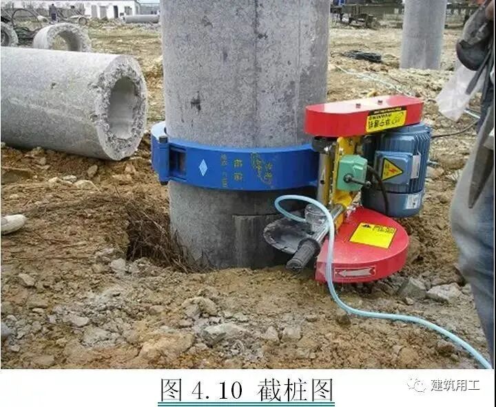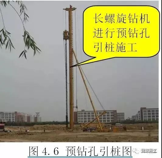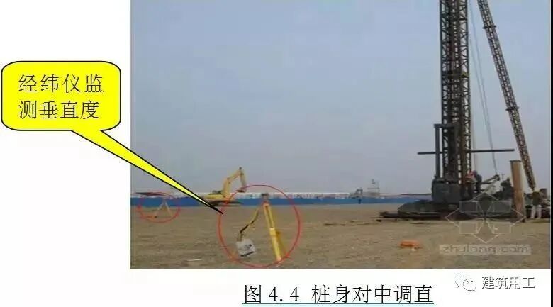 ![]() 基本规定 ◇对于密集型桩群:由中间向两侧或四周对称施工; ◇对于一侧毗邻建筑物桩群:由建筑物一侧向建筑物另一侧施工; ◇根据基础设计标高:宜先施工深桩后施工浅桩; ◇根据桩的规格(直径及单节桩长):宜先施工大直径桩再施工小直径桩,宜先施工长桩再施工短桩; ◇预应力混凝土桩的连接可采用端板焊接连接、法兰连接、机械啮合连接、螺纹连接,每根桩的接头数量不宜超过3个; ◇桩端嵌入遇水易软化的强风化岩、全风化岩和非饱和土的预应力混凝土空心桩,沉桩后,应对桩端以上2m左右范围内采取有效的防渗措施,可采用微膨胀混凝土填芯或在内壁预涂柔性防水材料; ◇工程正式开工前,应进行试打桩,试桩数量为工程桩总数的1%且不得少于5根。 2、试桩 试桩基本规定: ◇利用工程桩位置进行试打桩,试桩后作为工程桩使用; ◇试桩的位置、地质条件及其规格、长度要具有代表性; ◇选择在控制性勘察孔附近; ◇施打工艺和工程桩一致; ◇试打时采用高应变动测法配合测试; ![]() 高应变配合测试操作规程: ◇按地质勘察资料预估桩长再加3~4m作为配桩长度,用正式打桩施工用的桩锤按常规方法进行施打,并做好详细施工记录; ◇当桩尖接近设计持力层时暂停锤击,在桩头处安装传感器,然后启动打桩分析仪并继续锤击; ◇当打桩分析仪显示试打桩的瞬时阻力为2Ra/a时停止锤击,测出桩的入土深度,量出最后贯入度和计出最后1m锤击数等(Ra为单桩竖向抗压承载力特征值;a为土的恢复系数,黏性土取1.2~1.4,砂性土取0.9~1.1); ◇停歇24h后进行复打,若打桩分析仪显示复打桩瞬时阻力达到或超过2Ra时,可按上述得到的收锤标准作为正式打桩施工时的收锤标准参考值,若小于2Ra时,应调低a估算值,并重复试打直至满足为止。 应提供资料: ◇单桩竖向抗压极限承载力; ◇桩侧摩阻力和桩端阻力; ◇打桩的最大锤击能量和桩身的最大压应力; ◇桩身的最大拉应力; ◇桩身完整性; ◇桩的入土深度、每米锤击数、最后1m锤击数和最后贯入度。 工艺流程 ![]() 操作方法 测量放线: ◇控制桩和水准点位置以不受压桩影响为原则; ◇用木桩或短钢筋定位桩,用白灰标识桩的外轮廓线。 ![]() 桩机就位: ◇现场达到“三通一平”,场地承载力应满足桩机打桩要求,一般为140KPa/m2; ◇当场地不满足桩机打桩条件时:⑴场地为软塑、流塑淤泥质土时,换填或直接在上面填0.5~1m砖渣⑵场地为一般杂填性土层时,可直接在上面填0.3~0.5m厚砖渣⑶若仍不满足桩机打桩要求时,可视情况加厚砖渣,保证不陷机; ◇桩机进场至桩位,调整机架垂直度,调平桩机。 ◇混凝土预制桩的混凝土强度达到强度设计值的70%方可起吊,达到强度设计值的100%才能运输和打桩施工; ◇桩尖要在第一节桩起吊前接好,严禁吊装好垂直焊接桩尖; ◇起吊就位时,将桩吊至桩机夹具中夹紧并对准桩位,将桩尖放入土中,然后除去吊具; ◇提倡采用专用吊机吊桩,也可采用钢丝绳拖拉法取桩但需倍加小心; ◇桩帽必须与桩的直径相匹配,不可一帽多用,严禁使用博士帽; ◇桩垫要软厚适宜,可采用纸板、胶合板等制作,厚度应均匀一致,经锤击压实后的厚度应为120~150mm,在施工中应常检查更换; ◇锤垫应用坚纹硬木或盘绕叠层的钢丝绳制作,其厚度应为150~200mm,打桩前应进行检查、校正或更换。 ![]() 桩身对中调直: ◇第一节桩起吊就位后应认真检查桩位及桩身垂直度,桩位偏差不大于20mm; ◇桩身垂直度偏差宜先用长条水准尺粗校,然后用两台经纬仪或两个吊垂线在互为90度的方向上进行检测,校正后的垂直度偏差不得大于0.5%; ◇宜重锤低击,当桩身垂直度偏差超过0.8%时,应找出原因设法纠正,当桩尖进入硬土层后严禁用移动桩架强行回扳的方法纠偏; ◇若插桩后偏差难以调整到位,宜先拔起管桩再在孔洞内填砂后重插; ![]() 打桩: ◇当管桩插入地表土后遇上厚度较大淤泥层或松散回填土时,柴油锤应采用空锤施打,液压锤应采用落距20~30mm的方式施打; ◇在较厚黏土、粉质黏土中宜一次性连续打到底,尽量减少中间休歇时间且尽可能避免在接近设计深度时接桩; ◇过程中遇到贯入度突变、桩头桩身砼破裂、桩身突然倾斜、锤击数过多以及地面隆起、邻桩上浮等情况,应停止打桩并及时与监理、设计等共同分析原因,采取相应措施; ◇每根桩的总锤击数及最后1m沉桩锤击数控制:⑴PC桩总击数不宜超过2000,最后1m沉桩锤击数不宜超过250⑵PHC桩总击数不宜超过2500,最后1m沉桩锤击数不宜超过300。 ◇需引孔情况:①存在硬夹层难以穿透②较厚砂层难以穿透③上软下硬造成断桩④地面隆起; ◇引孔直径:比桩径小50~100mm; ◇引孔长度:一般不宜超过12m; ◇引孔方法:宜采用长螺旋钻机干作业钻孔法,钻孔垂直度偏差不宜大于0.5%; 引孔作业和打桩作业施工应密切配合,随钻随打,引孔和打桩应在同一工作台班中完成; ◇引孔中有积水时,宜用开口型桩尖。 ![]() 接桩: ◇桩顶露出地面50cm~100cm进行管桩焊接,宜采用手工电弧焊且焊缝宜采用2层3道; ◇接桩连接处表面应干净,上、下节桩身应对中,错位不宜大于2mm,若下节桩身略有倾斜,上节桩身应与下节桩身保持顺直,两端面应紧密贴合,不得在接头处出现间隙; ◇宜两个工人对称施焊,先均匀对称点焊4~6个点固定后再正式施焊,施焊时分层、均匀、连续进行。 ![]() ◇焊缝不得有凹痕、咬边、焊瘤、夹渣、裂缝等表面缺陷; 