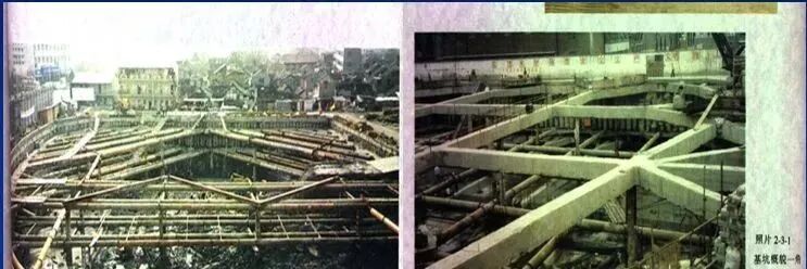 5)开槽施工法:与中央开挖施工法施工正好相反,先在坑内周边挖槽,用内支撑板桩墙法修筑周边的基础工程,形成一道重力式挡土墙,再挖除挡土墙内的全部土体,构筑中央部分的基础工程。