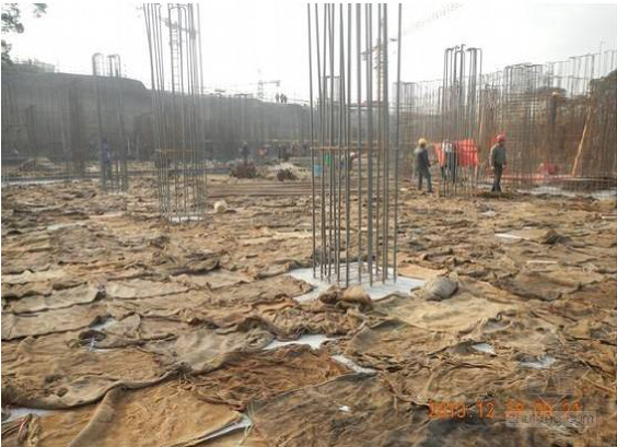 控制标准: 保湿养护的持续时间≥14d; 塑料薄膜完整,搭接≥100mm; 保持混凝土表面湿润。 (5)基础混凝土凿毛 施工要点: 放出轴线、控制线、墙柱边线;施工缝处凿毛处理,压力水冲洗干净。 控制标准: 剔除浮浆、疏松石子、软弱混凝土,露出粗骨料; 钢筋清理,去除油污; 表面湿润无积水。