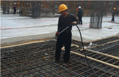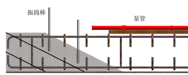 (2)基础混凝土浇筑振捣 施工要点: 分层连续浇筑,振捣点布置均匀。