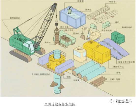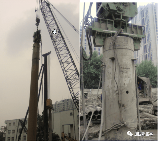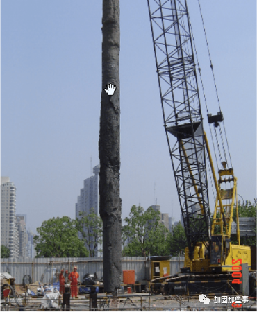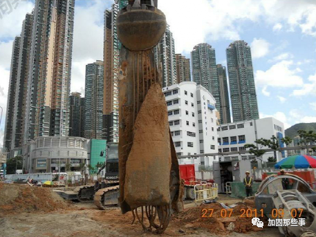 ![]() 地下清障拔桩施工方法介绍 ![]() 在目前大规模城市改造中,有时往往需要对原有桥梁、市政设施、建(构)筑物进行拆除,包括原有桥梁、市政设施、建(构)筑物的桩基,如何拔除深埋于地下的桩基(包括预制方桩、预制PHC管桩、钻孔灌注桩等)呢?本文介绍两种常用的施工方法。 一、全回转钻机拔桩方法 ![]() 1、工作原理 ![]() 全回转钻机处理地下障碍物技术属于日本套管旋转挖掘式套管工法。此工法的出现,实现了土木技术人员在有砾岩土层、各类桩基础、钢筋砼结构等障碍物完全没有清除的情况下就地实施灌注桩、置换桩、地下连续墙和顶管、盾构隧道无障碍穿越各类桩基础的可能。 全回转钻机动力设备夹紧套管进行360°回转钻进,在压入力和扭矩的共同作用下将套管压入土层深部,首节套管带合金刀头在钻进同时切割障碍物。在套管内部重锤对套管内的大体积混凝土障碍物进行破碎,用冲抓斗清除桶内土体和障碍物,抓斗有两扇可以活动的斗叶,在整个冲抓过程中斗叶在闭合与张开两种状态之间转换,实现破碎和抓取。 该设备定位快捷、准确,铅直精度高,施工速度快,噪音低,无污染,是一种新型的清除地下障碍物施工工艺。 2、主要施工设备 ![]() 全回转钻机(超级工法、Super Top工法》:整套设备包括全回转驱动装置、液压动力装置、套管、冲抓斗,为实现对切割后的大体积混凝土进行破碎,还配有液压重锤和铅锤。履带吊机、挖机(带镐头)。 ![]() ![]() 3、施工工艺 ![]() ![]() ![]() ![]() (1)场地准备:因拔桩设备均为大型设备且回转钻机在拔桩过程中产生较大反力,若工作面地基不稳定则会对施工质量及安全产生很大影响,因此对拔桩区域场地要求较高,需采用钢筋砼地坪硬化。 (2)挖出老桩并暴露; (3)将全回转钻机置于桩上,套管套住桩; (4)利用动力将带切削刀头的套管回旋切削压入岩土至旧桩桩底下1m; (5)拔桩:将锁口管与旧桩桩头连接,随后用全回转钻机顶拔力起拔连带桩的锁口管,当桩松动后起拔力会迅速降低,然后用吊机将桩直接拎出。若桩无法整根拔出,则采用重锤对桩进行破碎,然后用冲抓斗抓取取出套筒外,直至全部清除干净。 ![]() 全回转钻机及套管 ![]() 全回转钻机及冲抓斗 ![]() 冲抓斗(一) ![]() 冲抓斗(二) ![]() 冲抓斗清理旧桩 4、方法特点: ![]() ![]() ![]() ![]() (1)安全可靠,对周边土体扰动小 全回转清障拔桩施工工法在钢套管内进行清障拔桩及回填施工,对地下原状土不破坏或破坏小,对地下土体不产生扰动或产生很小的扰动。由于钢套管对孔壁的支撑,在钢套管周边的土体应力尚未释放时,就已经将障碍物清除并及时回填,对周边的构筑物无影响。 (2)施工速度快、质量高,且适用范围广泛 该方法可根据工程需要进行各类拔桩清障施工,如各种形式、各种规格、环境复杂、各种难度的旧钻孔灌注程、预制桩、预应力管桩、地下残留旧钢筋混凝土、块石等障碍物。 (3)风险小、能够确保后续工程施工 该方法进行切割清障或将旧桩完整拔除,一般情况下能顺利达到施工目的。即使遇到特殊情况,采用履带式起重机悬挂小型液压冲抓斗进行钢套管内将剩余的断桩或障碍物抓出,100%确保清障彻底。 (4)节能环保、优质高效 在拔桩的过程中,不会产生任何泥浆,且施工设备低噪音,施工速度快,且能保证施工质量。 (5)快速经济、降低工程造价 本方法清障拔桩是钢套管360度旋转切割切削,相比其他施工方法,受环境因素限制小,无需增加其它辅助设施,清障拔桩的施工效率高、风险低,具有良好的经济效益。 二、全套管无损减摩拔桩方法 ![]() 1、工作原理 ![]() ![]() ![]() ![]() 全套管无损减摩拔桩工法属于传统的拔桩方法,其原理是利用液压变频振动锤将钢套振动沉入,沉入深度超过原桩长后通过减少或解除桩侧土体摩阻力后将旧桩整体吊出,以外侧套管作为护壁,内侧采用高压水幕气幕,将旧桩周围的土体及障碍物切削后实施土体分离减摩,在旧桩拔出时只需考虑桩的自重,无需再考虑桩周国的摩阻力,利用钢套管将钢丝绳送到离桩底2m左右位置锁牢后用大吨位吊机将旧桩拔除。使用该方法拔桩施工,内侧减摩和整体吊桩是施工关键。由于该施工方法拔桩是用钢丝绳在底部吊拔,能将整桩拔出,既安全又快速。 2、主要施工设备 ![]() ![]() ![]() ![]() 采用大于旧桩直径的的钢套管(≥Φ1000直径),主要设备包括: (4)辅助下沉设备,用于钢套管下沉时喷水和气冲洗切割桩周土体; (5)泥浆泵,用于淤泥及泥浆处置。 3、施工工艺 ![]() (1)挖出老旧桩桩头并暴露,找出桩的中心; (2)用吊机将钢套管套在老桩桩头上,注意钢套管中心应与老桩中心对中(这样避免由于中心偏位、老桩轻微扩径,即出现钢套管就遇扩径混凝土无法下沉的现象); (3)用振动沉管设备将钢套管振动压入土壤中(考虑到下沉时的阻力,采用高压射水辅助下沉,水管和高压气管直接焊在钢套管壁上),沉管要控制下沉速度,随时纠正垂直度; (4)高压射水、喷气清孔,在下沉过程中,开启空压机及高压离心式水泵进行套管内桩外侧泥土冲刷清洗至桩身独立被剥离出来。最后单开高压6m3气压将管内泥浆水随气流全部溢出套管; (5)吊机吊出桩体; (6)套管内回填水泥土,将掺入7%水泥的土体进行现场拌和,回填至套筒中。 (7)启动固定在钢套管上的振动锤,使用履带吊吊起边振动边拔起钢套管。 (8)桩孔堆土预压2米,3天后卸载;旧桩处